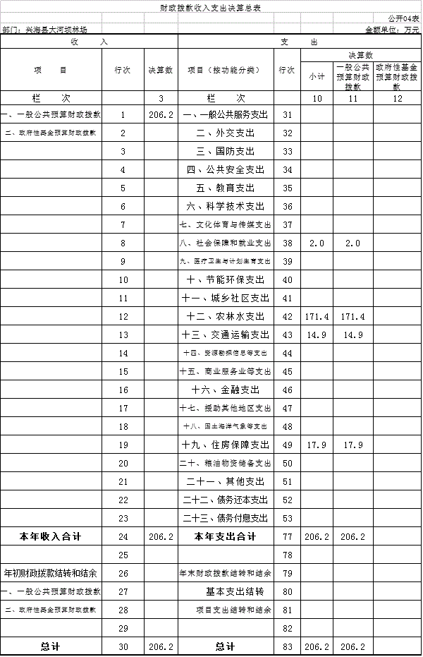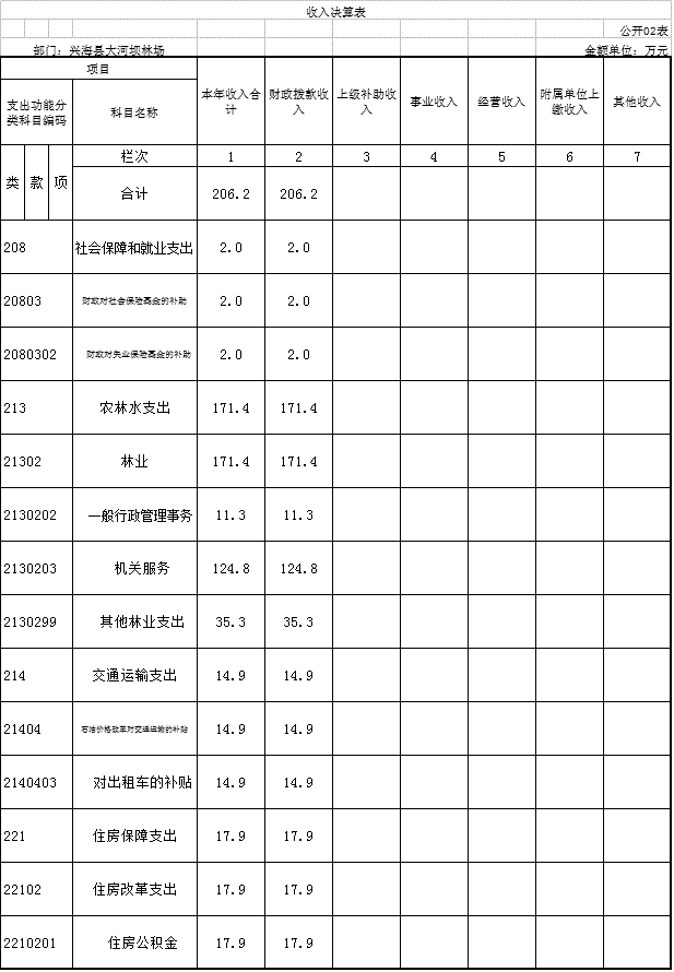 索引号: 发布机构: 生效日期: 2016-07-18 废止日期: 文 号: 所属主题: 预算/决算 兴海县大河坝林场2015年度部门决算 来源: 发布时间:2016-07-18 浏览次数: 次 【字体:小 大】 【打印正文】 分享到: 【字体:小 大】